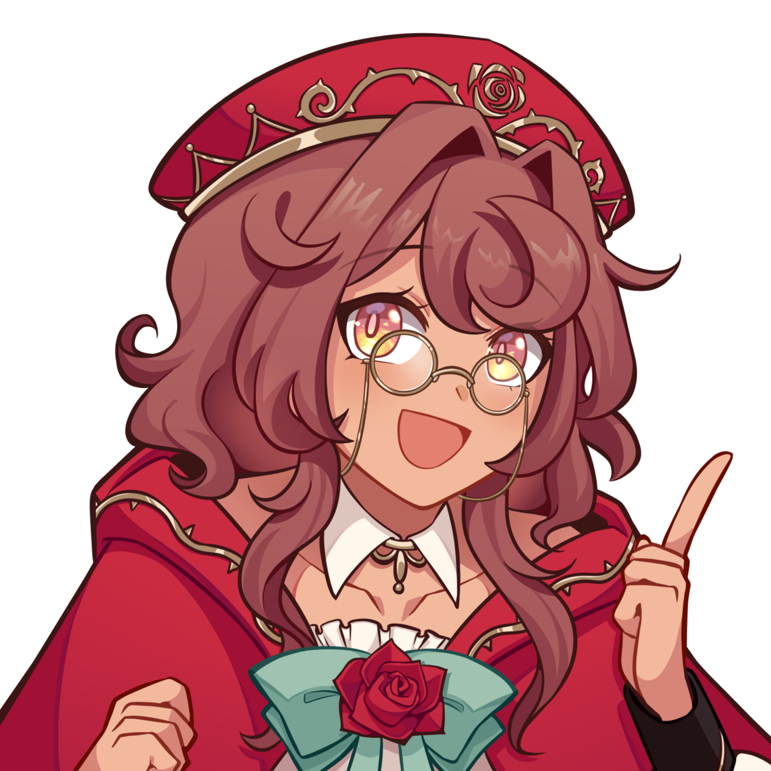 Rose is a young noblewoman from the House of Briar, one of the many prominent families within the Town of Gardenia. It is a bustling dome-town floating across the cosmos that celebrates the Aeon of Beauty through their long held traditions of horticulture and romantic literature.She is a bright-eyed dreamer and a hopeless romantic, being one of the few Storytellers of the town that are tasked with collecting history and fairytales alike to pass on to the next generation forward. Because of this important status, Rose will often be seen with her steadfast guard by her side.The young woman is enamored by the 'world outside', although her chronic anemia often cuts her small adventures outside of town short. As her home rarely gets any new visitors, she is enamored with The Nameless and their tales beyond the stars. One day though, she prays that she can pen a new, breathtaking experience to her book than repeating the same old fairytales of her little town.